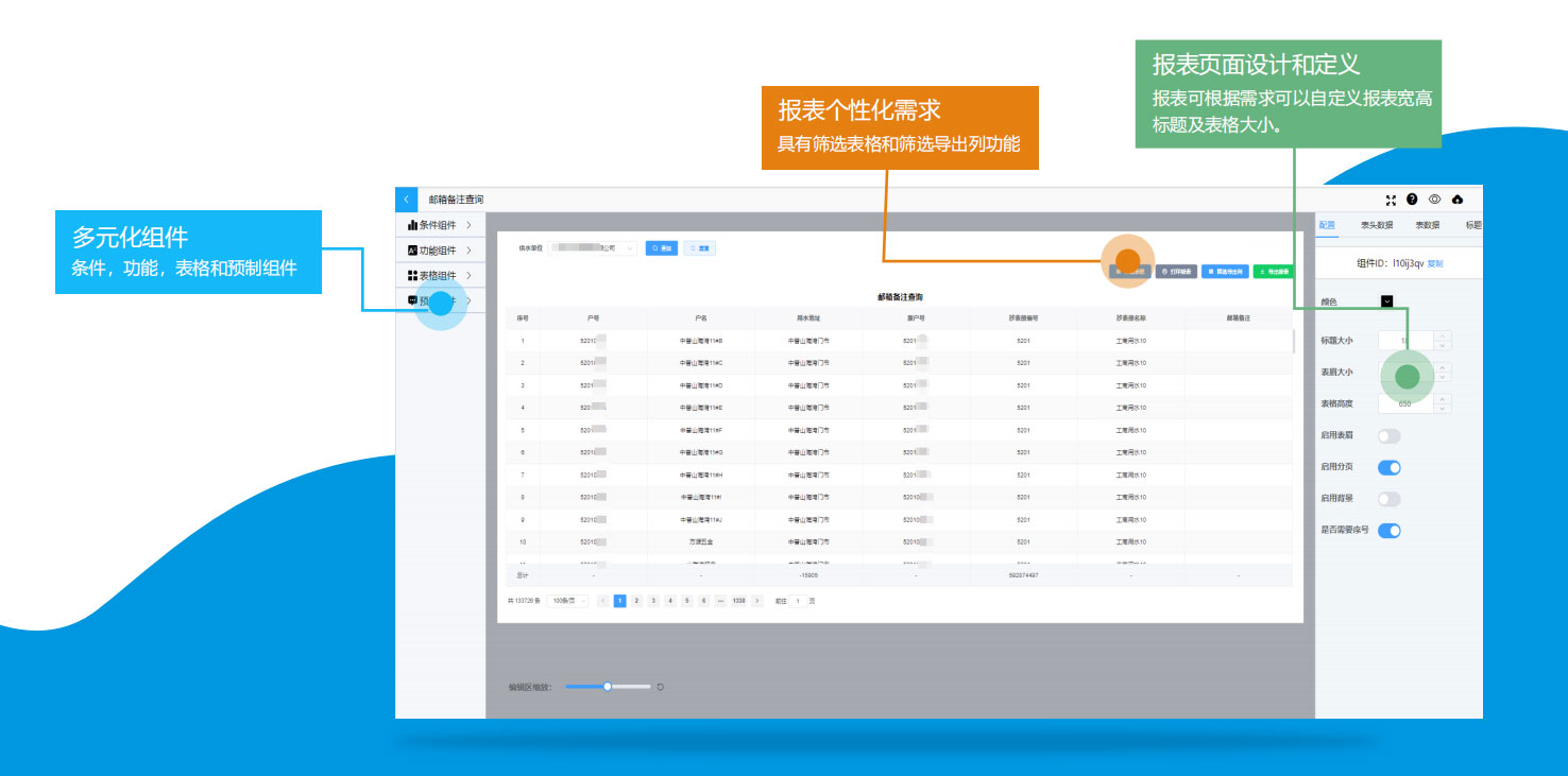 自定义报表最大的优势是:成本低,时间短,复用性高。客户和业务人员可以按照自身的业务需求,快速生成业务报表,满足自身动态报表的需求,创建完成的报表实现多端兼容,支持打印导出,满足企业常用需求,自动形成报表,避免重复建表。
