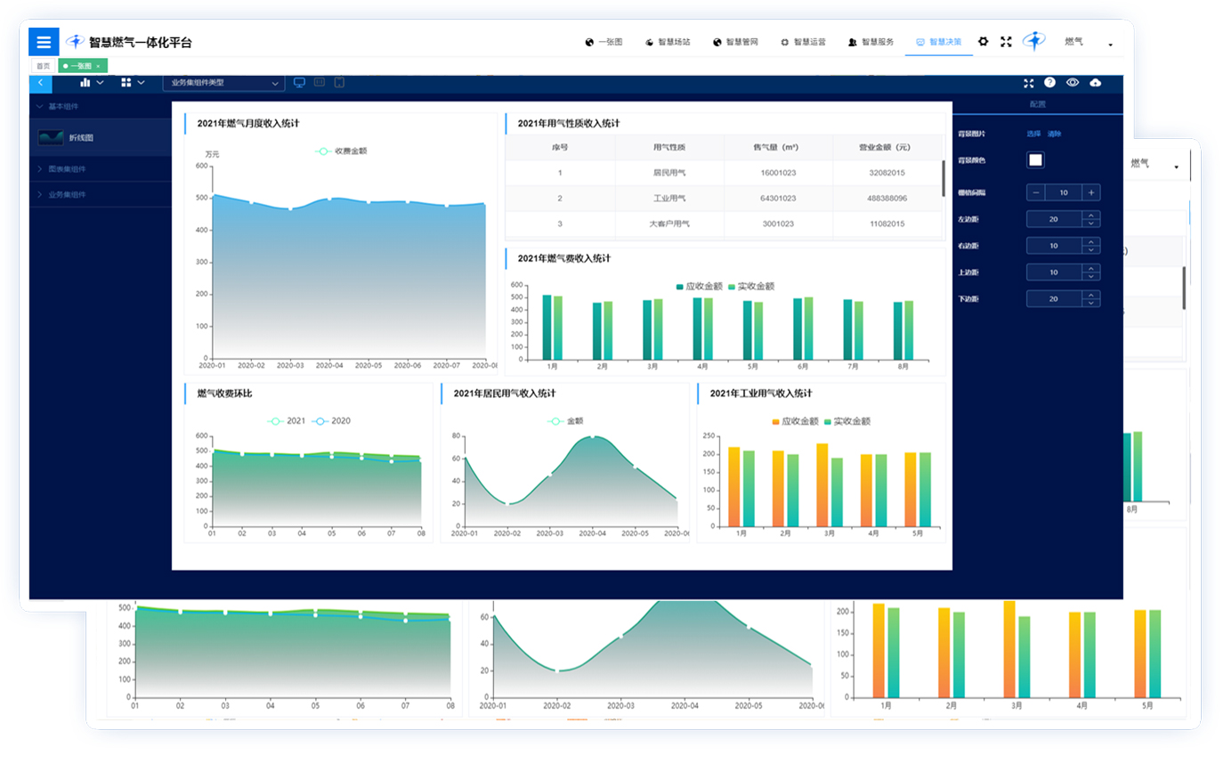 可以从不同维度、不同 空间对生产运维、管网管理、客户营销、计量管理、工程管理、综合管理等进行综合管控决策分析展现。